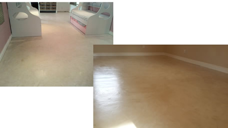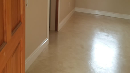 In the case of application onto polished smooth steel troweled floors and walls, the surface must be acid washed or scarified or a slurry applied containing bonding agents to it, prior to application in order to promote adhesion.