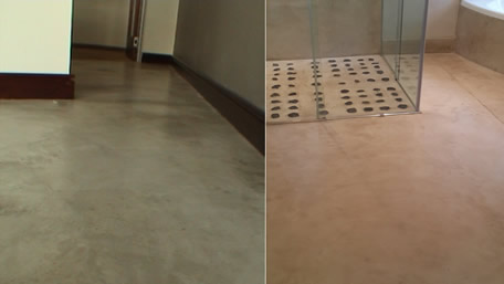 Stucco Grano Floor Screed is a self leveling cement based floor coating manufactured in many UV stable natural earthy colours used on floors, walls, counter tops, shower surrounds, facades,etc. Applied onto new or old concrete floors which are 100% sound and clean. Hard wearing, mottled, natural homogenous wall or floor coating.