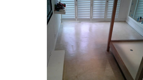 If applied in direct sunlight or windy conditions lightly moisten to aid and ensure proper curing. Seal bone dry Stucco Grano Floor Screed with two coats of Stucco Grano Sealer matt/gloss for floors and walls to achieve the desired finish or Stucco Acrylic Sealer matt for wall applications.